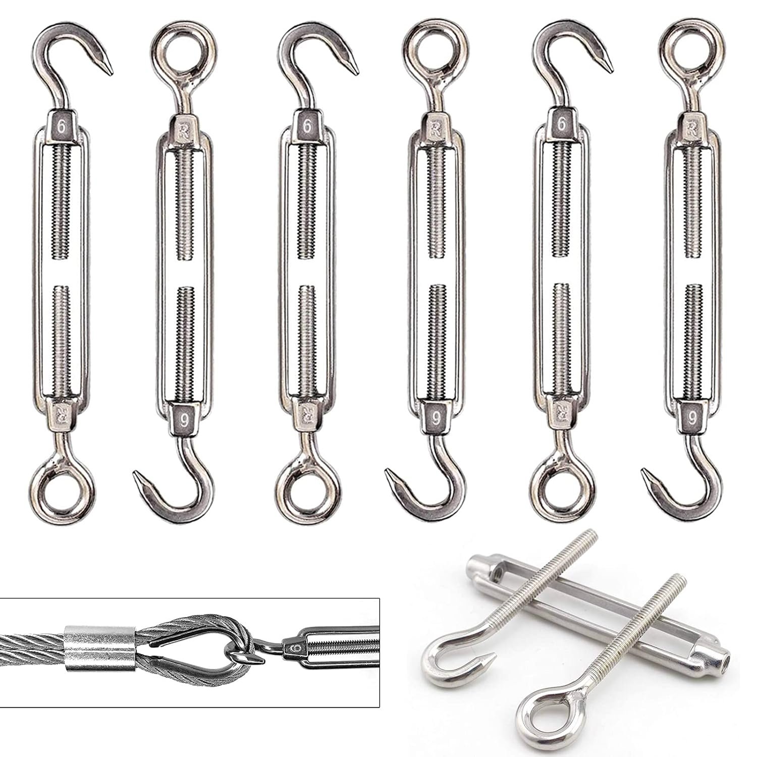 SS304-6mm Hook & Eye Turnbuckle Heavy Duty Wire Rope Tension/Tightener
